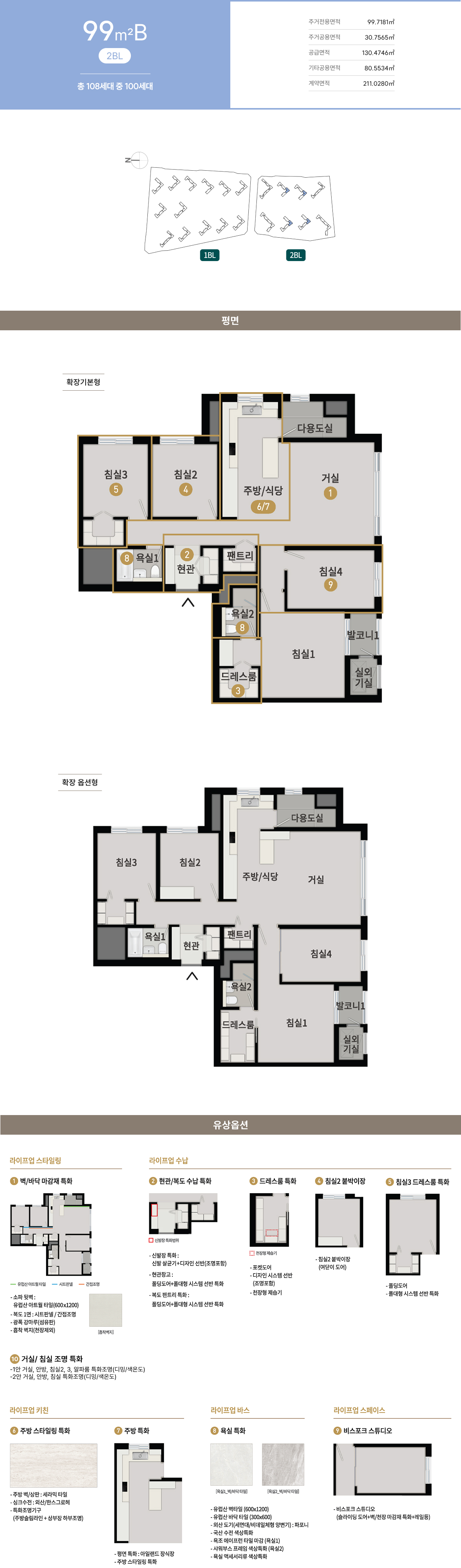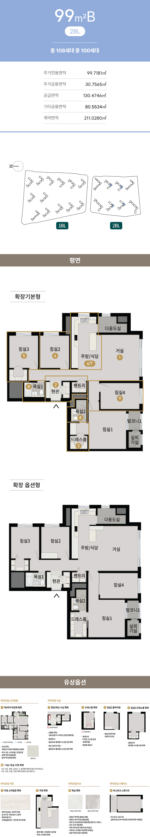 옵션평면과 전체 평면의 스케일은 상이하며 실제 모습은 견본주택에서 확인하시기 바랍니다.