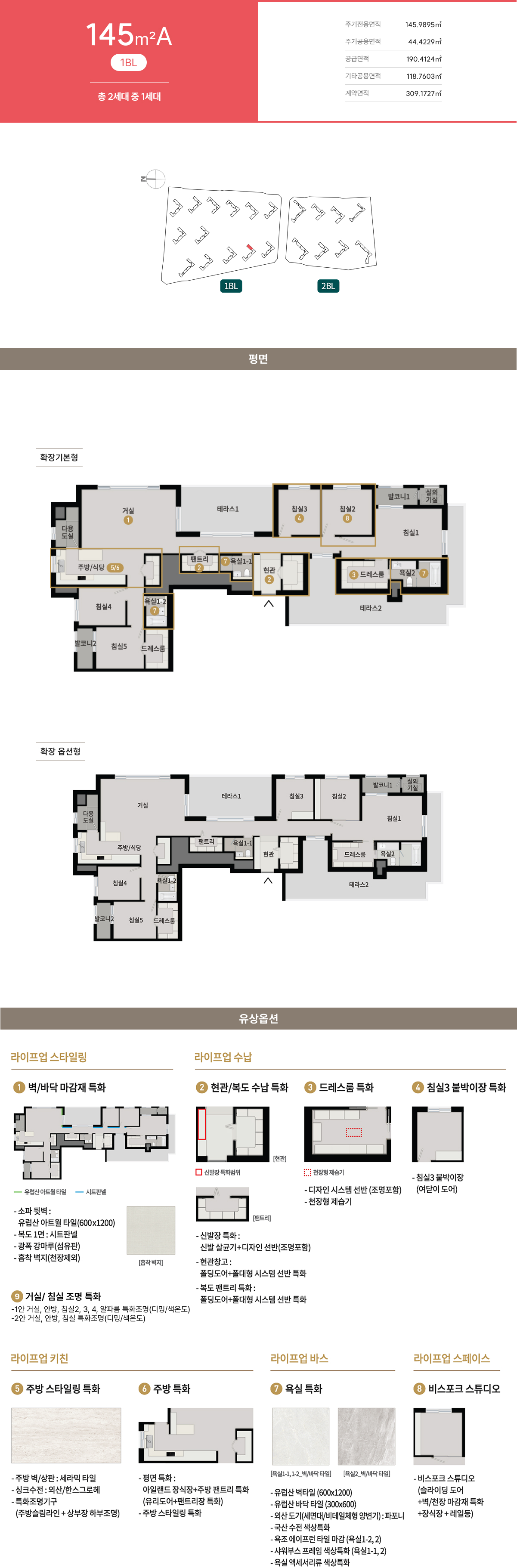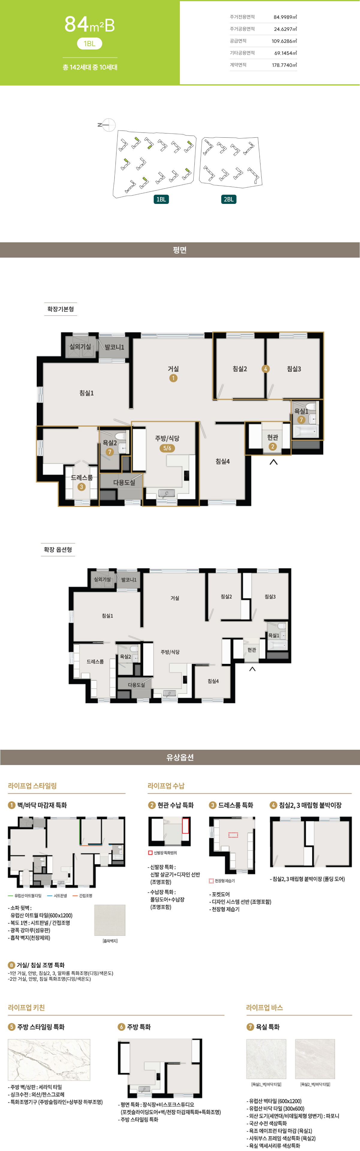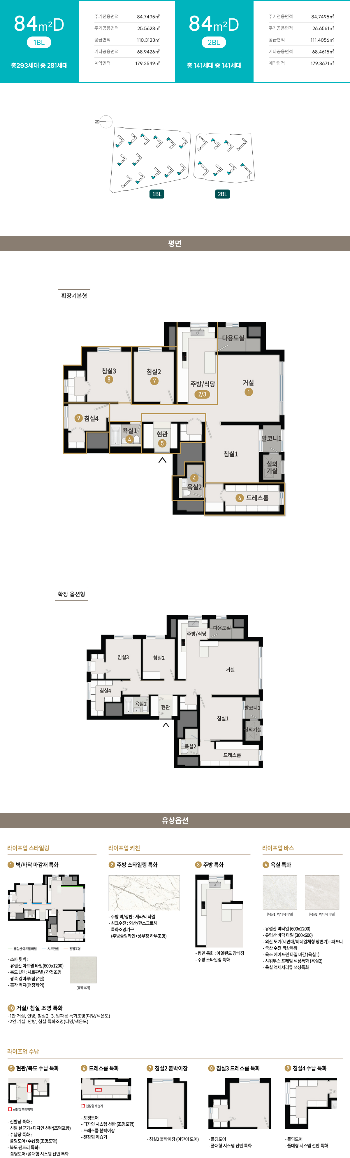 발코니 확장 및 옵션 선택에 따라 배선기구, 스마트 스위치, 조명기구, 세대분전반, 온도조절기 및 스위치 등의 종류, 수량, 위치는 변경될 수 있습니다.